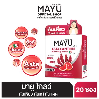แอสตาแซนธิน ชนิดกรอกปาก พร้อมทาน กันเหี่ยว กันแก่ กันแดด ครบจบใน 1 ซอง ด้วยสารสกัดจาก แอสตราแซนธิน ส้มแดง และวิตามินซี วิตามินอี ผิวดูกระจ่างใส รูขุมขนกระชั้บขึ้น ริ้วรอยจางลง สิวลดลง 2 กรัม x 20 ซอง