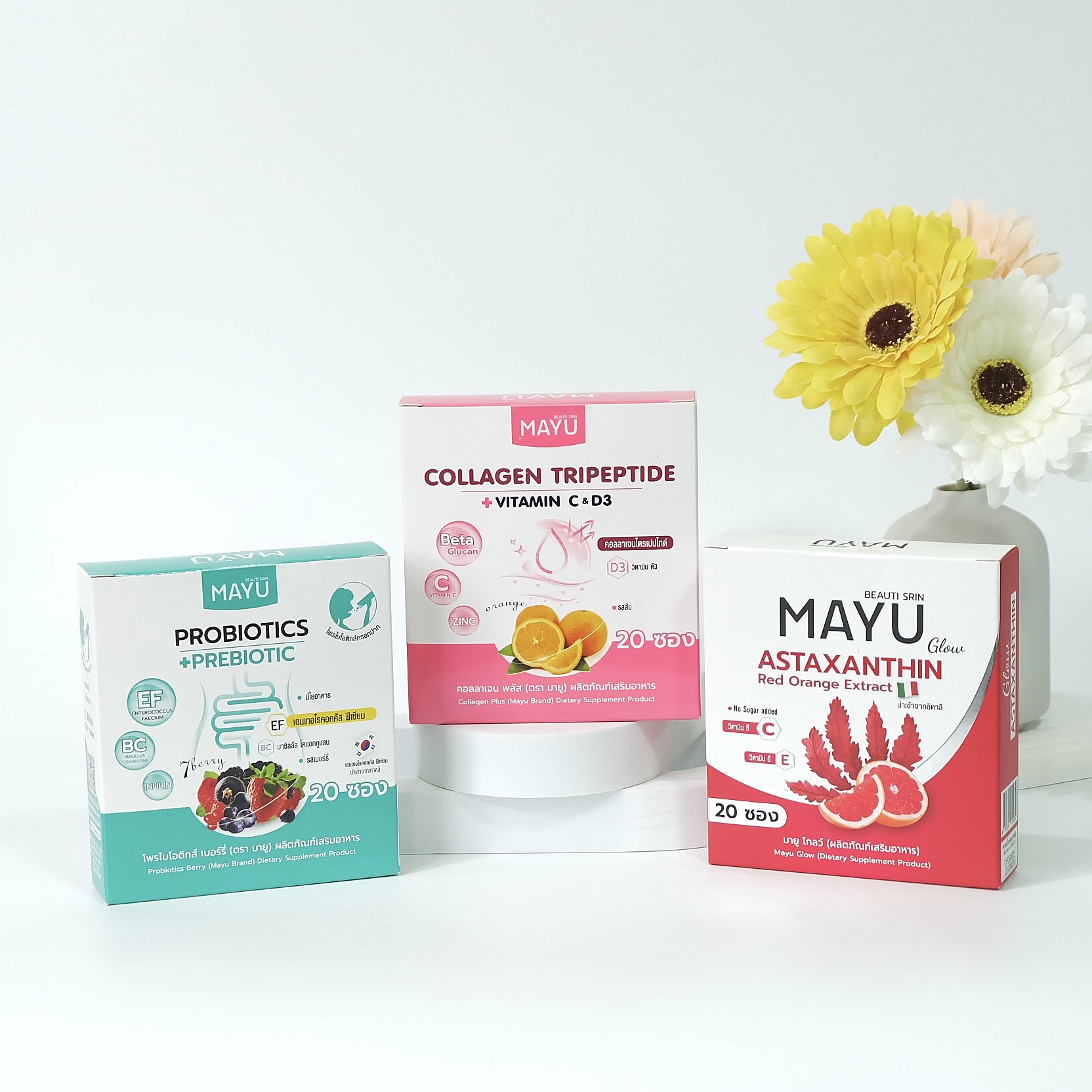 ณิชาเลือกเป็นของแบรนด์ MAYU ทั้งหมดเลยค่ะ แต่ละกล่องจะช่วยเรื่องอะไรบ้างนั้น ตามมาเลยค่ะ