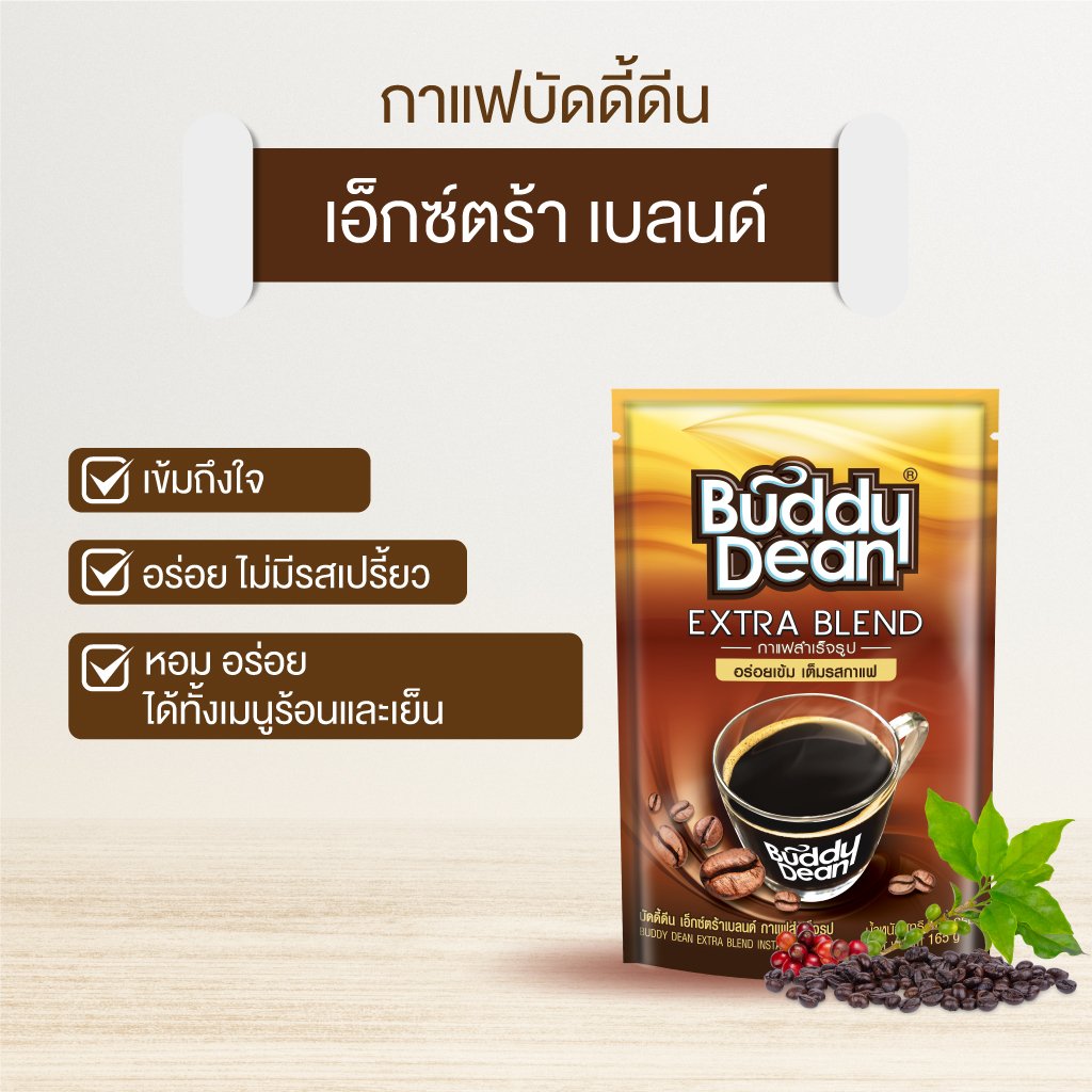 จากขั้นตอนการเบลนด์กาแฟสูตรพิเศษจาก บัดดี้ดีน ทำให้รสของกาแฟเข้มไม่เหมือนใคร อร่อย เหมาะสำหรับผู้ไม่ชอบรสเปรี้ยว ดื่มกาแฟ ต้องกาแฟเกล็ด บัดดี้ดีน เอ็กซ์ตร้า เบลนด์